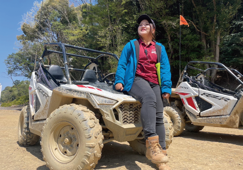 夢は、全国のバギーパークをまわること。どんな車がどんなところで走っていて、どんなお客様にスタッフがどんな接客をしているのか、知りたい。