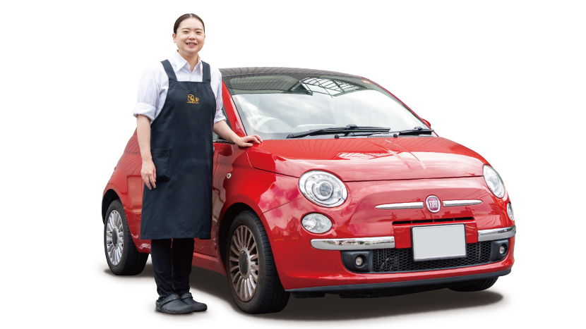 FIAT500を選んだ理由は、『父の「店のイメージに相応しい輸入車がいいよ」という助言で。かわいいところが気に入っています』とのこと。